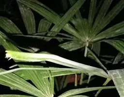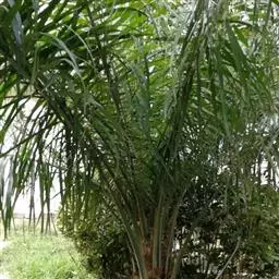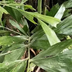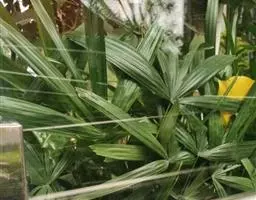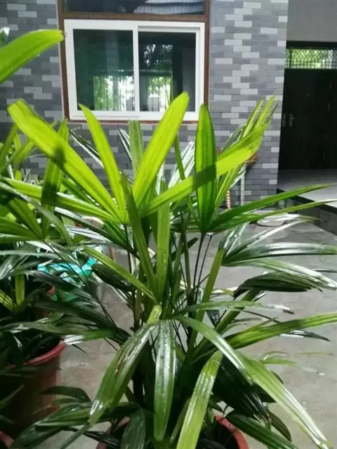 细叶棕竹,灌木,茎细如竹,多数聚生,有网状叶鞘。叶半圆形,掌状深裂,裂片狭长,阔线形,软垂,裂片7…