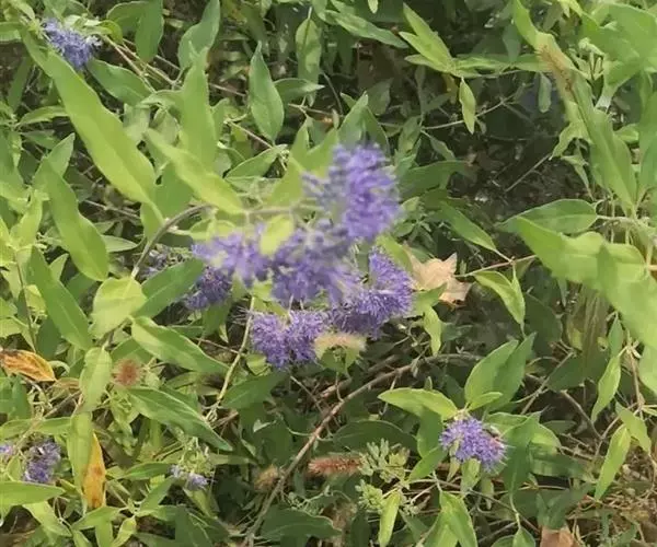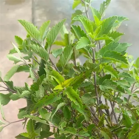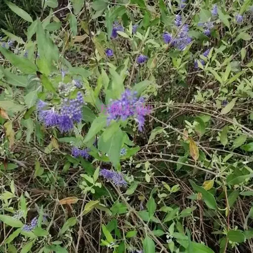 1、莸:叶广卵圆形,基部阔楔形或近截形,每边有3-5枚粗圆齿,叶柄较短(1-1.5分)。