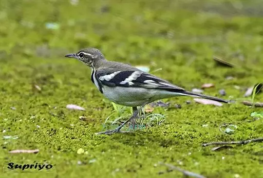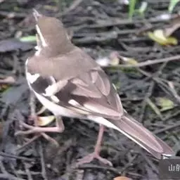 山鹡鸰:是中等体型的林鹡鸰,体长约17厘米,主要羽色为褐色及黑白色。头部和上体橄榄褐色,眉纹白色,…
