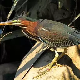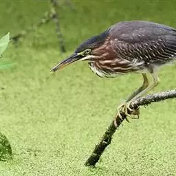 绿鹭:是鹳形目鹭科绿鹭属鸟类。体型小,头顶黑,枕冠亦黑色,上体蝉灰绿色,…