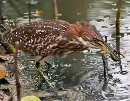 大麻鳽主要以鱼、虾、蛙、蟹、螺、水生昆虫等动物性食物为食。