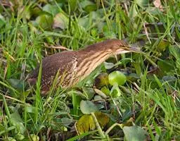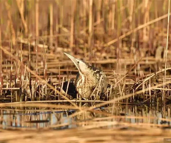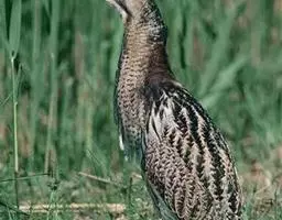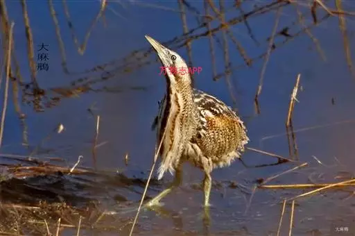 大麻鳽(学名:Botaurus stellaris)属大型鹭类,体长59-77厘米。身较粗胖,嘴粗而尖;颈、脚较粗短;头黑褐色;背黄褐色,具粗著的黑褐色斑点;下体淡黄褐色,具黑褐色粗著纵纹;嘴黄褐色;脚黄绿色。栖息于山地丘陵和山脚平原地带的河流、湖泊、池塘边的芦苇丛。除繁殖期外常单独活动,秋季迁徙季节也集成5-8只的小群。夜行性,多在黄昏和晚上活动,白天多隐蔽在水边芦苇丛和草丛中,有时亦见白天在沼泽草地上活动。主要以鱼、虾、蛙、蟹、螺、水生昆虫等动物性食物为食。分布甚广,欧洲、非洲、亚洲均有。