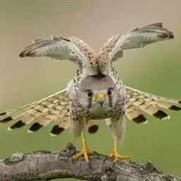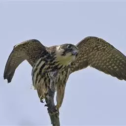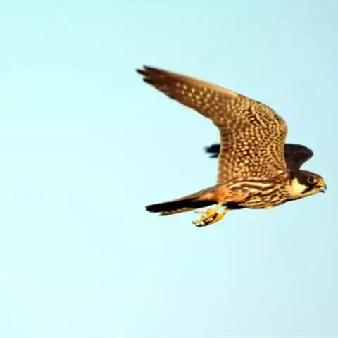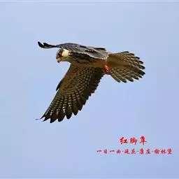 燕隼:是隼科、隼属的鸟类。体长约36厘米,体重140-340克。体形比猎隼、游隼等都小,为小型猛禽,…
