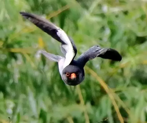 红脚隼(读音:hóng jiǎo sǔn)为脊索动物门,鸟纲,隼形目,隼科、隼属动物,又叫青燕子、青鹰、红腿鹞子、蚂蚱鹰 等,是小型猛禽。是国家二级重点保护动物。该物种的模式产地在俄罗斯。它是迁徙旅程最远的猛禽,单程为13 000-16 000公里。