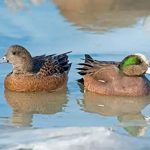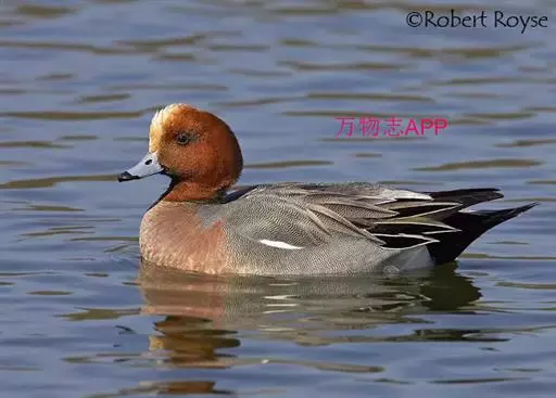 赤颈鸭(学名:Anas penelope)属中型鸭类,个体较家鸭小,和罗纹鸭大小差不多,体长41-52厘米,体重0.6千克左右。雄鸟头和颈棕红色,额至头顶有一乳黄色纵带。背和两胁灰白色,满杂以暗褐色波状细纹,翼镜翠绿色,翅上覆羽纯白色。在水中时可见体侧形成的显著白斑,飞翔时和后面的绿色翼镜形成鲜明对照,容易和其他鸭类相区别。雌鸟上体大都黑褐色,翼镜暗灰褐色,上胸棕色,其余下体白色。栖息于江河、湖泊、水塘、河口、海湾、沼泽等各类水域中。主要以植物性食物为食。常成群在水边浅水处水草丛中或沼泽地上觅食眼子菜、藻类和其他水生植物的根、茎、叶和果实。分布于欧亚大陆北部。越冬在欧洲南部、非洲东北部和西北部、埃及北部、中南半岛。偶见于格陵兰、北美、安的列斯群岛和加里曼丹。