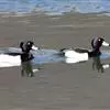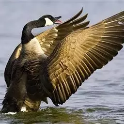 黑雁是雁形目鸭科黑雁属鸟类,又称黑鹅。头、颈、胸、嘴及脚黑褐色;虹膜褐色;背及两翼灰褐色;尾下覆羽白色;胸侧及胁部多近白色纹;颈部两侧各具一个特征性白色横纹,在颈前后断开,未能联成颈环。幼鸟颈部无白斑,而翅上多白色横纹。黑雁繁殖于北美洲、西伯利亚极地的苔原冻土带,越冬于南方沿海的草地及河口。在中国安徽也能见其身影。主要栖息在海湾、海港及河口等地,在冬季里大多出现在有耐碱植物生长的湖泊和水库周围,也出现在周围地势低洼的咸水湖和沿海地区,偶尔还出现在农田地里。性活跃,喜集群,常成群活动和栖息。主要以植物性食物为食。繁殖期在6-8月,雌鸟孵卵,雄鸟通常在距巢100米以内范围内守候警诫。雌鸟孵卵时常将头和颈朝地面平伸出去以降低高度。孵化期为22-28天。黑雁被列入中国林业局2000年8月1日发布的《国家保护的有益的或者有重要经济、科学研究价值的陆生野生动物名