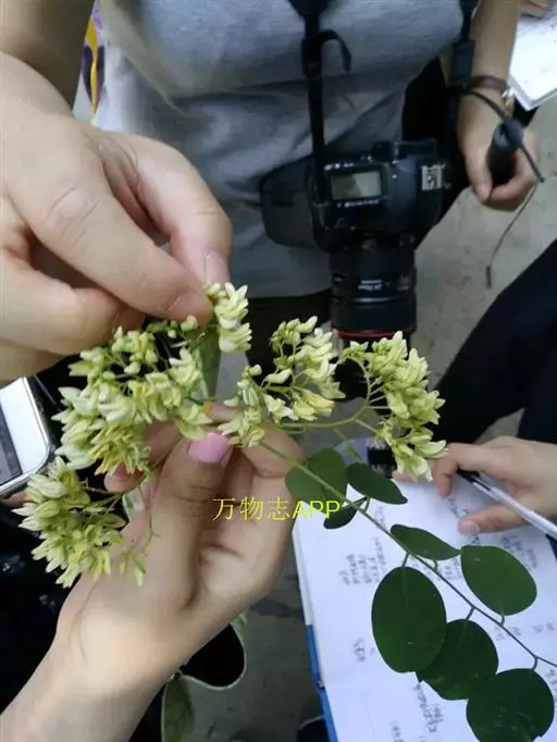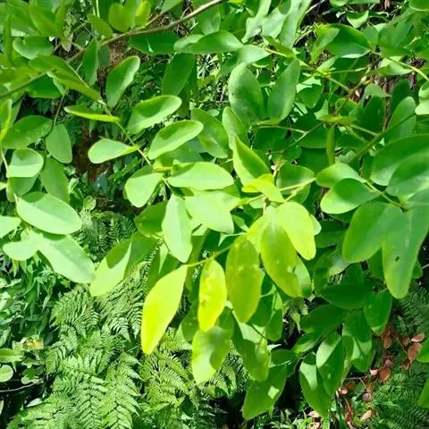 羽状复叶长15-25厘米;小叶3-5对,近革质,椭圆形至长圆状椭圆形,长3.5-6厘米,宽2.5-4厘米,先端钝.或稍凹入,基部圆形或阔楔形,两面无毛,细脉隆起,上面有光泽。