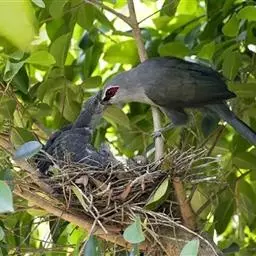 绿嘴地鹃:体形似小鸦鹃,但羽色大致绿灰;嘴绿色,头侧眼的周围有一裸区;后爪弯曲。虹膜赤红色,…