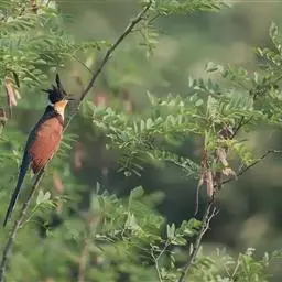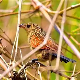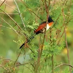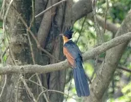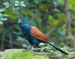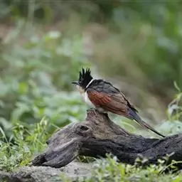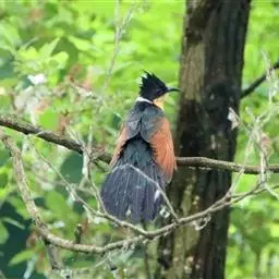 斑翅凤头鹃栖息于低山丘陵和山麓平原等开阔的疏林、竹林,灌丛等各类森林环境中,最高分布海拔高度可达4000米以上,是林栖鸟类。