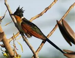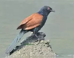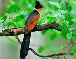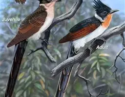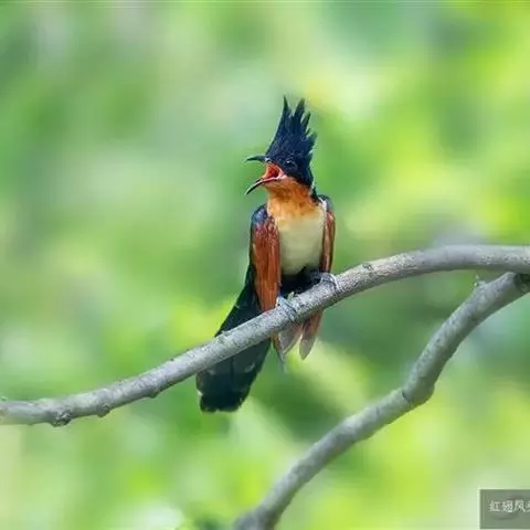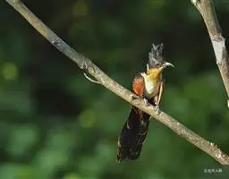 红翅凤头鹃:体长约38厘米,顶冠及凤头黑色,具显眼的直立凤头,背及尾黑色而带蓝色光泽,翅栗红色,…