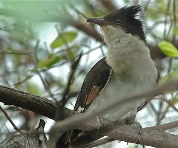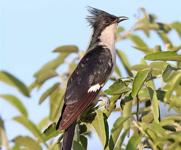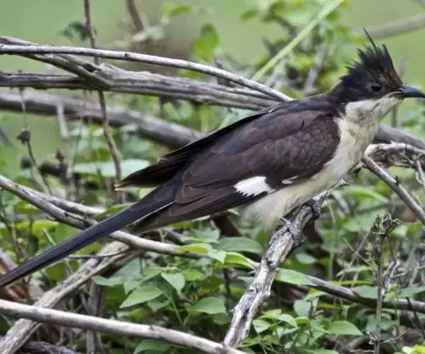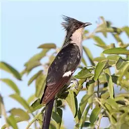 斑翅凤头鹃(学名:Clamator jacobinus): 成鸟具羽冠,上体及头侧、翅、尾等黑色,具铁绿色亮辉,尾羽端部具白斑,两侧者形宽,中央者较狭;下体白色、淡灰白或略带棕黄色。虹膜褐至红褐色;嘴黑色;脚灰蓝黑色。和红翅凤头鹃区别在羽冠较短;翅黑色而具一大白斑;尾具白端;下体大致白色。