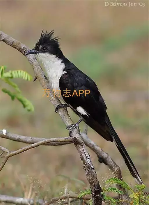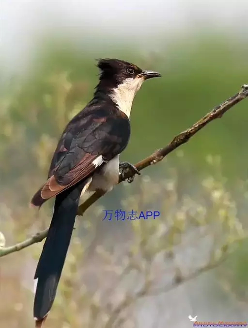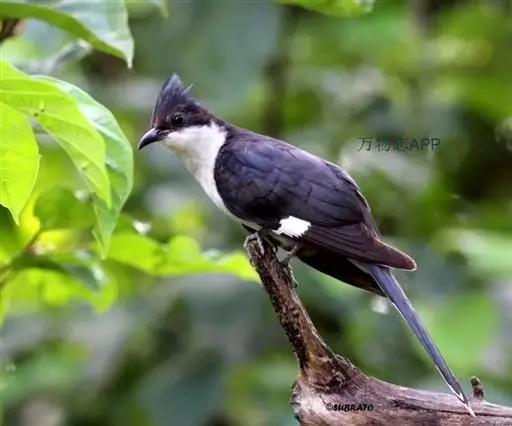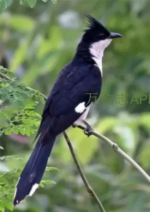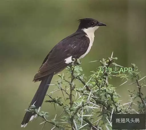 斑翅凤头鹃: 成鸟具羽冠,上体及头侧、翅、尾等黑色,具铁绿色亮辉,尾羽端部具白斑,两侧者形宽,…