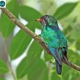 翠金鹃体长约17厘米,雄鸟上体辉绿色,头至背缀有很多棕栗色,…