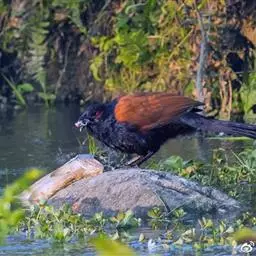 褐翅鸦鹃,是鹃形目鸦鹃科鸦鹃属的鸟类。褐翅鸦鹃的身体为黑色;头颈和胸带蓝紫色金属光泽并具黑亮的羽干纹,…