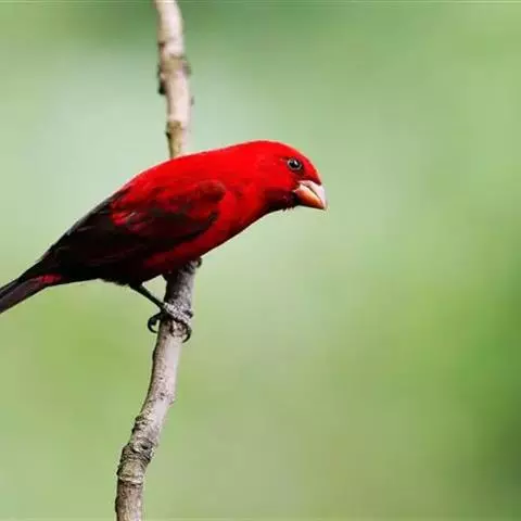 酒红朱雀小型鸟类,体长13~15厘米。雄鸟通体深红色,头部深朱红或棕红色,下背和腰玫瑰红色,…