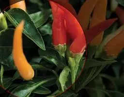 辣椒,别名:牛角椒、长辣椒、菜椒、灯笼椒,拉丁文名:Capsicum annuum L.,为木兰纲、茄科、辣椒属一年或有限多年生草本植物。茎近无毛或微生柔毛,分枝稍之字形折曲。叶互生,枝顶端节不伸长而成双生或簇生状,矩圆状卵形、卵形或卵状披针形,全缘,顶端短渐尖或急尖,基部狭楔形;花单生,俯垂;花萼杯状,不显著5齿;花冠白色,裂片卵形;花药灰紫色。果梗较粗壮,俯垂;果实长指状,顶端渐尖且常弯曲,未成熟时绿色,成熟后成红色、橙色或紫红色,味辣。种子扁肾形,淡黄色。