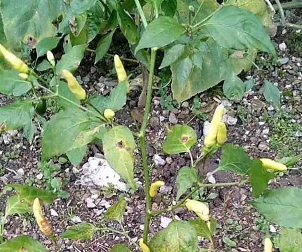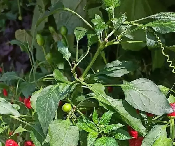 植物体高可达1米。叶卵状披针形,叶柄细长。花在枝下部常单生,在枝顶端由于节间极短缩而数朵花(可达8-10朵和数个叶一起呈簇生状),花梗细瘦,直立或斜升,花稍俯垂。果梗粗壮,直立,浆果指状或圆锥状,长4-10厘米,微弓曲,在梗上直立生,成熟后成红色,味很辣。