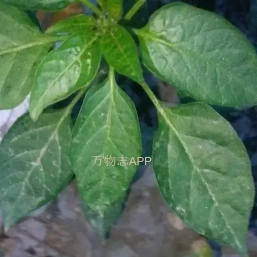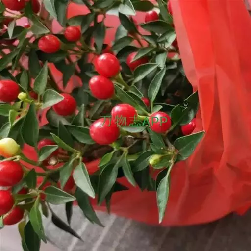 朝天椒茄科辣椒属一年或多年生草本植物;卵形;花通常单只生长于二分叉间,花梗直立,花稍俯垂,…
