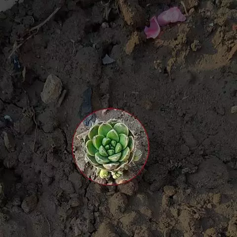 3.用园艺铲在原盆植株根系周围5cm左右的位置挖出小苗。将带土坨的小苗栽入已经准备好的花盆内。