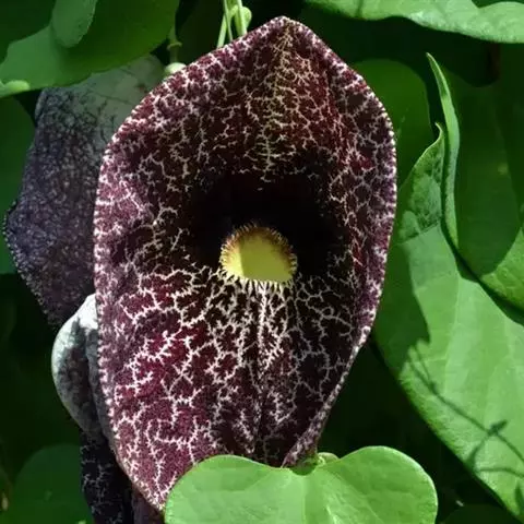 巨花马兜铃花朵的主要部分只有一片,看起来好像是一个巨大的、带有纹理的兜状物,而不像普通的花朵那样拥…