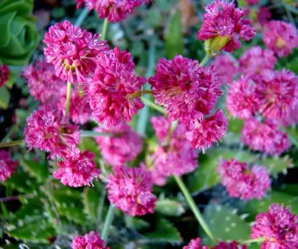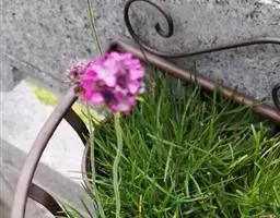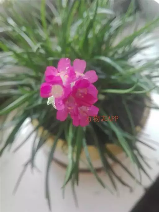蓝雪科矾松属宿根草花,植株低矮,丛生状,株高20-30厘米。叶基生,叶线状长剑形, 海石竹 花为粉红色至玫瑰红色,全缘、深绿色;春季开花,头状花序顶生。花茎细长,小花聚生于花茎顶端。呈半圆球形,紫红色,花茎约3厘米。