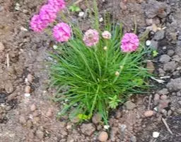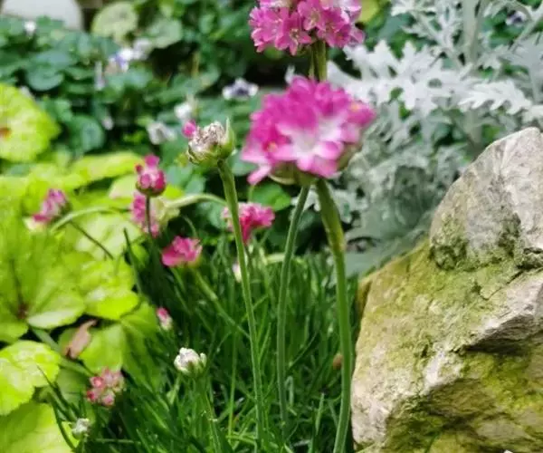 海石竹“罗裙”(Armeria maritime “Laucheana”)株高20厘米,鲜艳的粉红色花朵,花簇花期长。