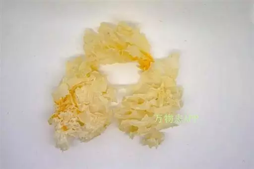 银耳为门担子菌门真菌银耳的子实体,银耳是由10余片薄而多皱褶的扁平形瓣片组成。银耳子实体纯白至乳白色,一般呈菊花状或鸡冠状,直径5~10厘米,柔软洁白,半透明,富有弹性,由数片至组成,形似菊花形、牡丹形或绣球形,直径3~15厘米。