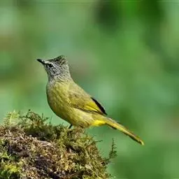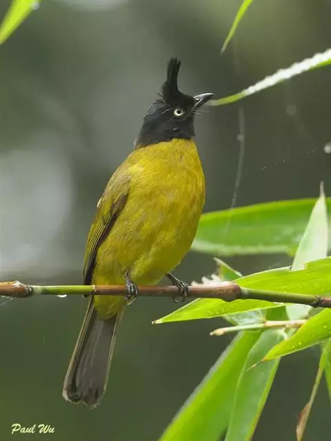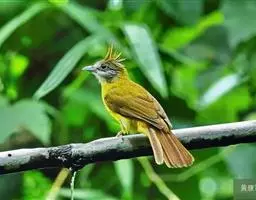 黑冠黄鹎:体长18-21厘米,是一种中等体型偏黄色鹎。整个头、颈、颏、喉黑色,头顶有显著直立的羽冠,…