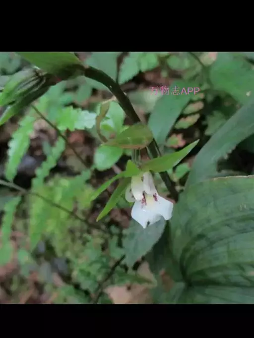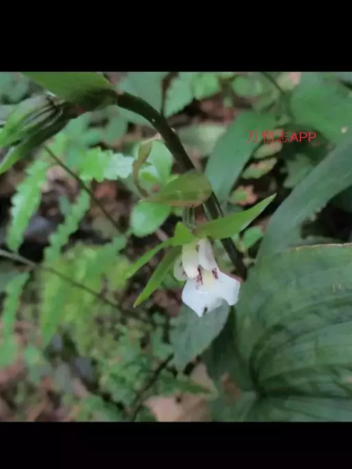 吻兰 吻兰假鳞茎细圆柱形,貌似叶柄,通常长约4厘米,与叶柄近等粗,基部稍扩大并多少贴伏于根状茎上,被鞘。叶纸质,长7-15 (-21)厘米,宽(2-)4-7(-9)厘米,先端急尖,基部近圆形并具长1-2厘米的柄,具多数弧形脉。