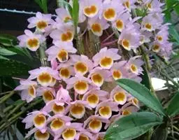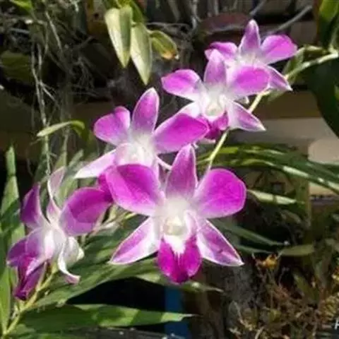 盆距兰 D.Don):茎长5-30厘米,粗5-8毫米,常弧形弯曲,具多数叶。叶二列互生,稍肉质,…