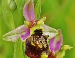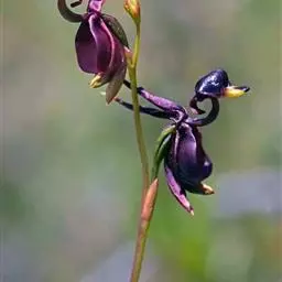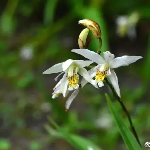 吻兰(学名:Collabium chinense (Rolfe) Tang et Wang):假鳞茎细圆柱形,貌似叶柄,基部稍扩大并多少贴伏于根状茎上,被鞘。叶纸质。花葶长14-18厘米,无毛,被2-4枚膜质筒状鞘;总状花序长4-7厘米,疏生4-7朵花;花中等大;萼片和花瓣绿色;花瓣长圆形,与萼片等长而稍狭,先端渐尖;唇瓣白色,倒卵形,长约9毫米,基部具爪,3裂。花期7-11月。