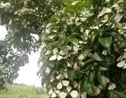 危害症状:该病主要为害枝干。在皮层上形成圆圈、椭圆形或不规则厚膜,形似膏药。所以,称它为灰色膏药病。在成年植株上发生,通常活枝和死枝都能受害。受害后,树势减弱,甚至枯死。