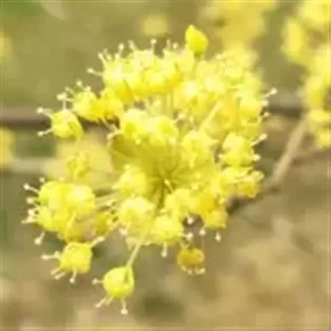 山茱萸(学名:Cornus officinalis Sieb. et Zucc.)落叶乔木或灌木;树皮灰褐色;小枝细圆柱形,无毛。叶对生,纸质,上面绿色,无毛,下面浅绿色;叶柄细圆柱形,上面有浅沟,下面圆形。伞形花序生于枝侧,总苞片卵形,带紫色;总花梗粗壮,微被灰色短柔毛; 花小,两性,先叶开放;花萼阔三角形,无毛;花瓣舌状披针形,黄色,向外反卷;雄蕊与花瓣互生,花丝钻形,花药椭圆形;花盘无毛;花梗纤细。核果长椭圆形,红色至紫红色;核骨质,狭椭圆形,有几条不整齐的肋纹。花期3-4月;果期9-10月。