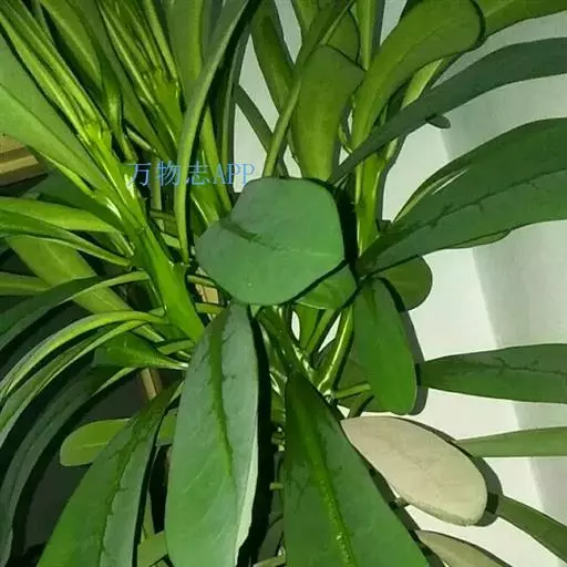 叶互生,少而稀疏,肉质,常呈五列生于嫩枝顶端脊上,倒卵形、倒卵状长圆形至匙形,长4.5-12厘米,宽1.3-3.8厘米,顶端钝圆,具小凸尖,基部渐狭,全缘;叶脉不明显;叫柄短,长2-4毫米;托叶刺状,长2-3毫米,宿存。