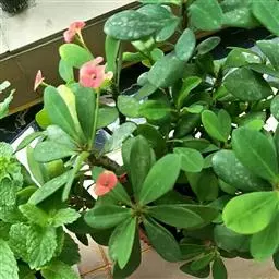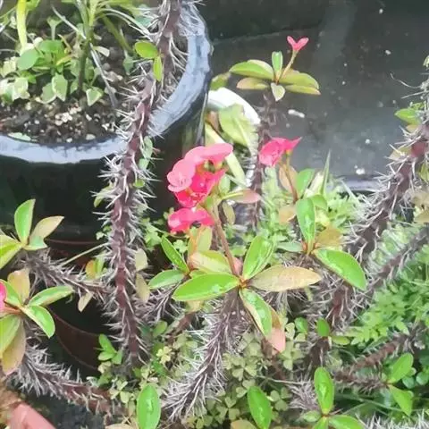 虎刺梅:别称铁海棠,是蔓生灌木植物。茎多分枝,长60-100厘米,直径5-10毫米,具纵棱,密生硬…