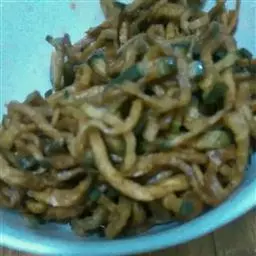 海藻20克、干贝20克、海带20克、素油30克、面粉100克、 盐5克、葱10克、亦可配以海虾、牡蛎等食材。