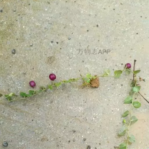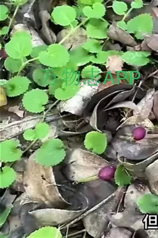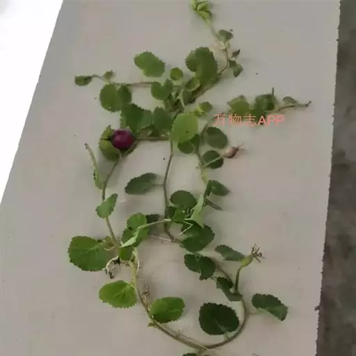 别名:地钮子、地茄子、地浮萍铜锤玉带草 一年生匍匐纤细小草本, 平卧地表, 长达45cm(厘米), 须根多, 黄色, 茎绿色, 略呈方形, 有细柔毛, 节下生根.叶互生, 圆形至心状卵圆形, 长1~1.2cm(厘米), 宽1~1.2cm(厘米), 基部心脏形, 先端钝, 边缘钝锯齿, 表面绿色, 背面淡绿色, 两面均有短毛, 基脉5~7条.花淡紫色, 单生叶腋而与叶对生, 花梗长1~2cm(厘米), 萼5裂, 边缘有刺毛, 花冠左右对称, 2唇形, 雄蕊5枚, 子房下位, 2室.浆果椭圆形, 紫蓝色, 有宿萼.