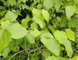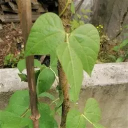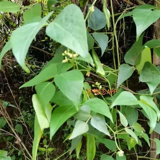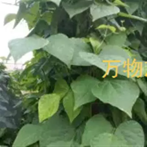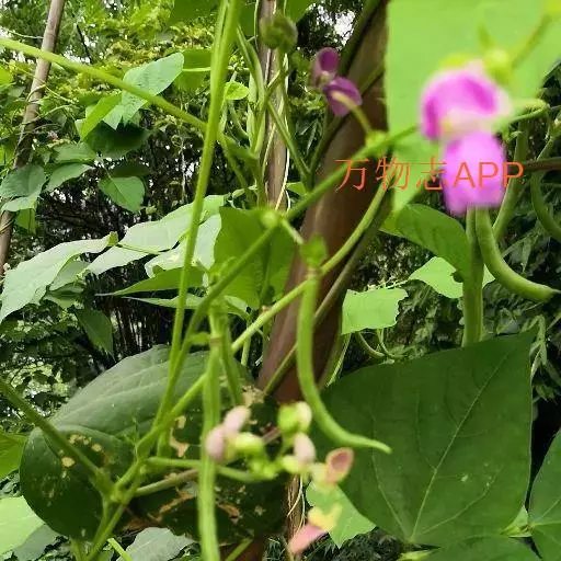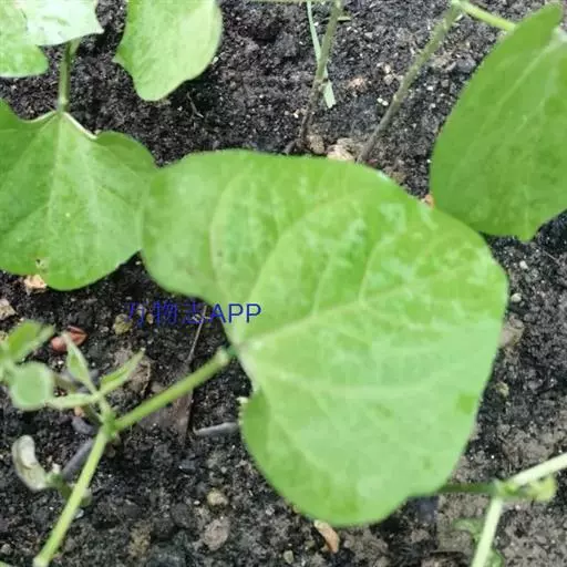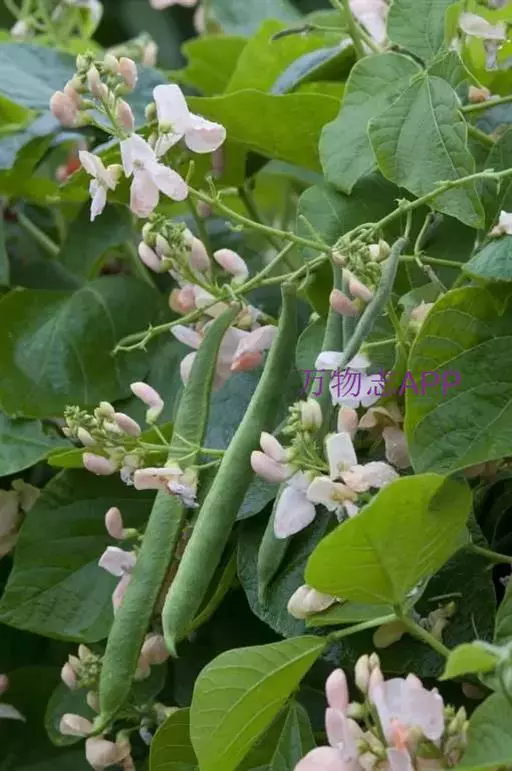 菜豆 一年生缠绕或近直立草本。茎被短柔毛或老时无毛。羽状复叶具3小叶;托叶披针形,长约4毫米,基着。小叶宽卵形或卵状菱形,侧生的偏斜,长4-16厘米,宽2.5-11厘米,先端长渐尖,有细尖,基部圆形或宽楔形,全缘,被短柔毛。