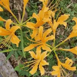 稻草石蒜草本,地生。鳞茎近球形;叶带状;伞形花序,有花5-7朵,花稻草色;花被裂片腹面散生少数粉红…
