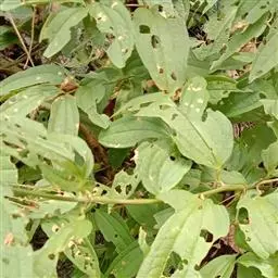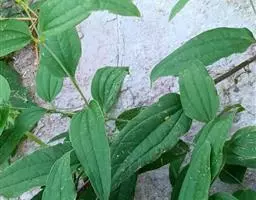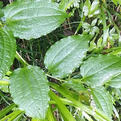 一年生(北方)或多年生(南方)草本,直立或稍攀援,有根状茎。茎长20-100厘 米,中空,有少量髓,干后凹瘪而具槽,无刺。叶卵形至矩圆形,长4-20厘米,宽2-14厘米,先端渐尖,基部浅心形至近圆形,下面苍白色且通常具粉尘状微柔毛,很少 无毛(但主脉上无毛);叶柄长1.5-4.5厘米,脱落点位于上部,如有卷须则位于基部 至近中部。