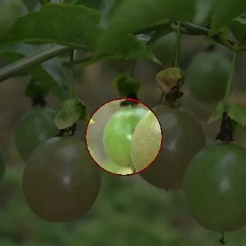 果圆柱状,长1.7厘米,直径1厘米,幼时被绒毛,成熟时秃净,有斑点。盛花期5月中旬一下旬。