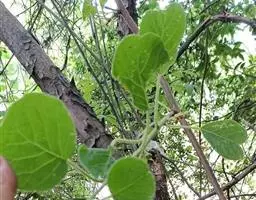 大型半落叶藤本;着花小枝很短,1-2厘米或更短,直径约2毫米,密被黄褐色或红褐色粗糙硬毛或一般糙毛;隔年枝灰褐色,通常残存稀疏毛被,皮孔极少,也不显著,髓白色,片层状。