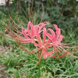 石蒜 Herb.):鳞茎近球形。秋季出叶,叶狭带状,顶端钝,深绿色,中间有粉绿色带;花茎高约30厘…