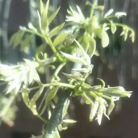 葫芦树是小乔木,高5-18米,主干通直,胸径28厘米;枝条开展,分枝少。叶丛生,2-5枚,大小不等,阔倒披针形,长10-16厘米,宽4.5-6厘米,顶端微尖,基部狭楔形,具羽状脉,中脉被棉毛。花单生于小枝上,下垂。花萼2深裂,裂片圆形。花冠钟状,微弯,一侧膨胀,一侧收缩,淡绿黄色,具有褐色脉纹,长5厘米,直径2.5-3厘米,裂片5,不等大,花冠夜间开放,发出一种恶臭气味,蝙蝠传粉。果卵圆球形,浆果,长18-20厘米,粗913厘米、无毛,黄色至黑色,果壳坚硬,可作盛水的葫芦瓢。