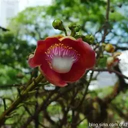 2010-12中国科学院华南植物园热带雨林温室内,有一棵树挂满了果实,又圆又大的,炮弹“从天而降”之势,引来众多游客驻足观赏。因其形状果实酷似原始的炮弹,被形象地称之为炮弹果。