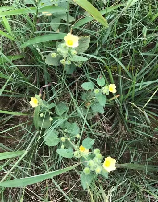 心叶黄花稔(Sida cordifolia L.),锦葵科、黄花稔属植物,分布于中国台湾、福建、广东、广西、四川和云南等省区。亚洲和非洲热带和亚热带地区也有。生于山坡灌丛间或路旁草丛中。