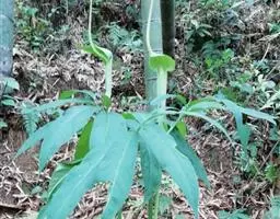 草本,有球形块茎;叶为叉指状复叶,于花后抽出,阔大;花序高大,上部的为雄花,…