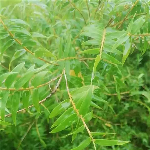 为庭园观赏品种,叶片细长,枝叶下垂,形似垂柳,甚为美观。