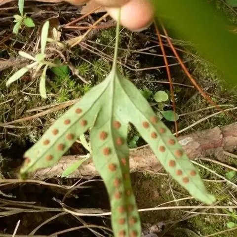 鳞片披针形,长约5毫米,棕色,顶端长渐尖,边缘全缘或偶有疏齿。叶远生;叶柄的长短和粗细均变化较大,长约在2-20厘米,直径约在0.5-2毫米范围,禾秆色,光滑无毛。叶片为从卵圆形至长条形,长约2-20厘米,宽1-2厘米,顶端短渐尖或钝圆,基部楔形至圆形;分裂的叶片其形态也极其多样,裂片或长或短,或较宽,或较狭,但通常都是中间裂片较长和较宽。叶片 (或裂片) 的边缘具缺刻和加厚的软骨质边,通直或呈波状。中脉和侧脉两面明显,侧脉不达叶边;小脉不明显。孢子囊群大,圆形,在叶片中脉或裂片中脉两侧各一行,着生于中脉与叶缘之间;孢子表面具刺状突起 。