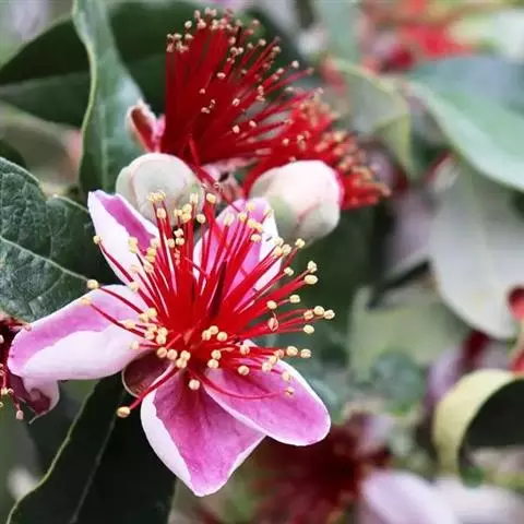 菲油果是桃金娘科、野凤榴属植物。常绿小乔木,高约5米;枝圆柱形,灰褐色。叶片革质,…